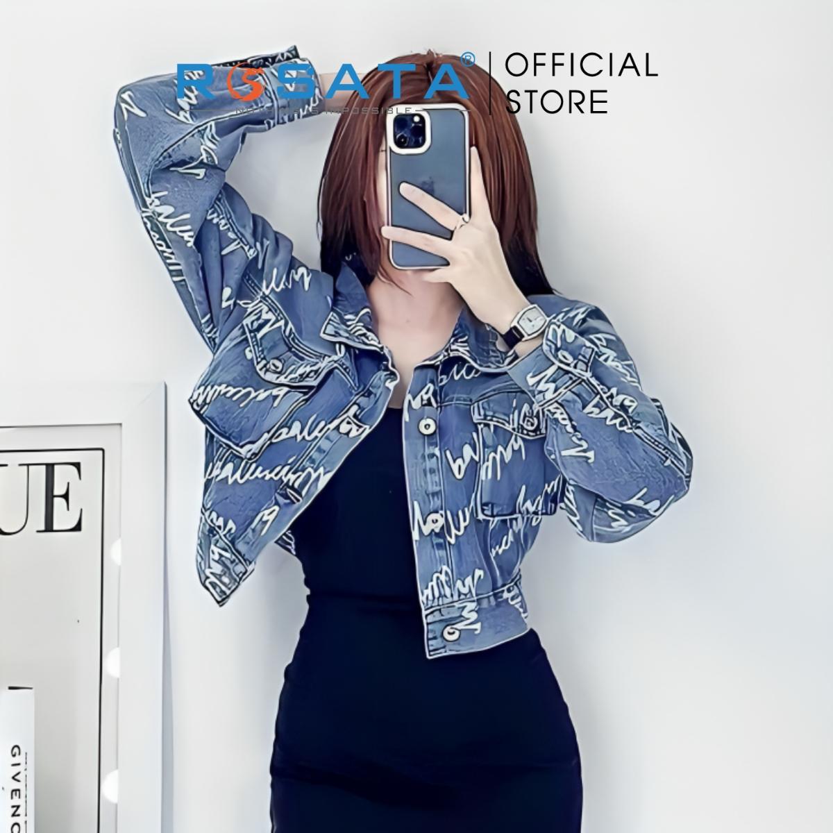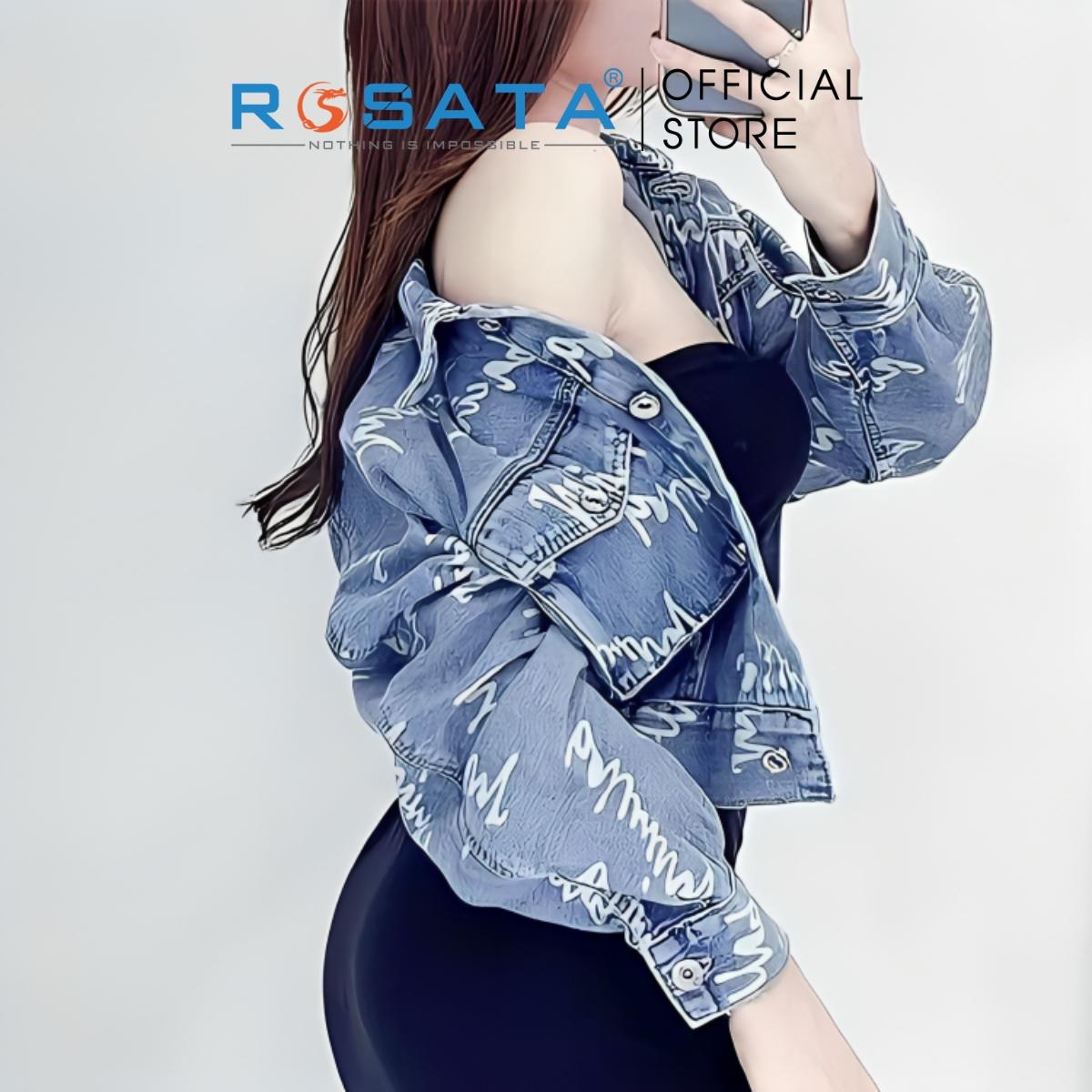 Tên sản phẩm: Áo khoác nữ ROSATA K07 croptop jeans túi hộp tay dài in mix dạo phố cao cấp Freesize màu xanh xuất xứ Việt Nam