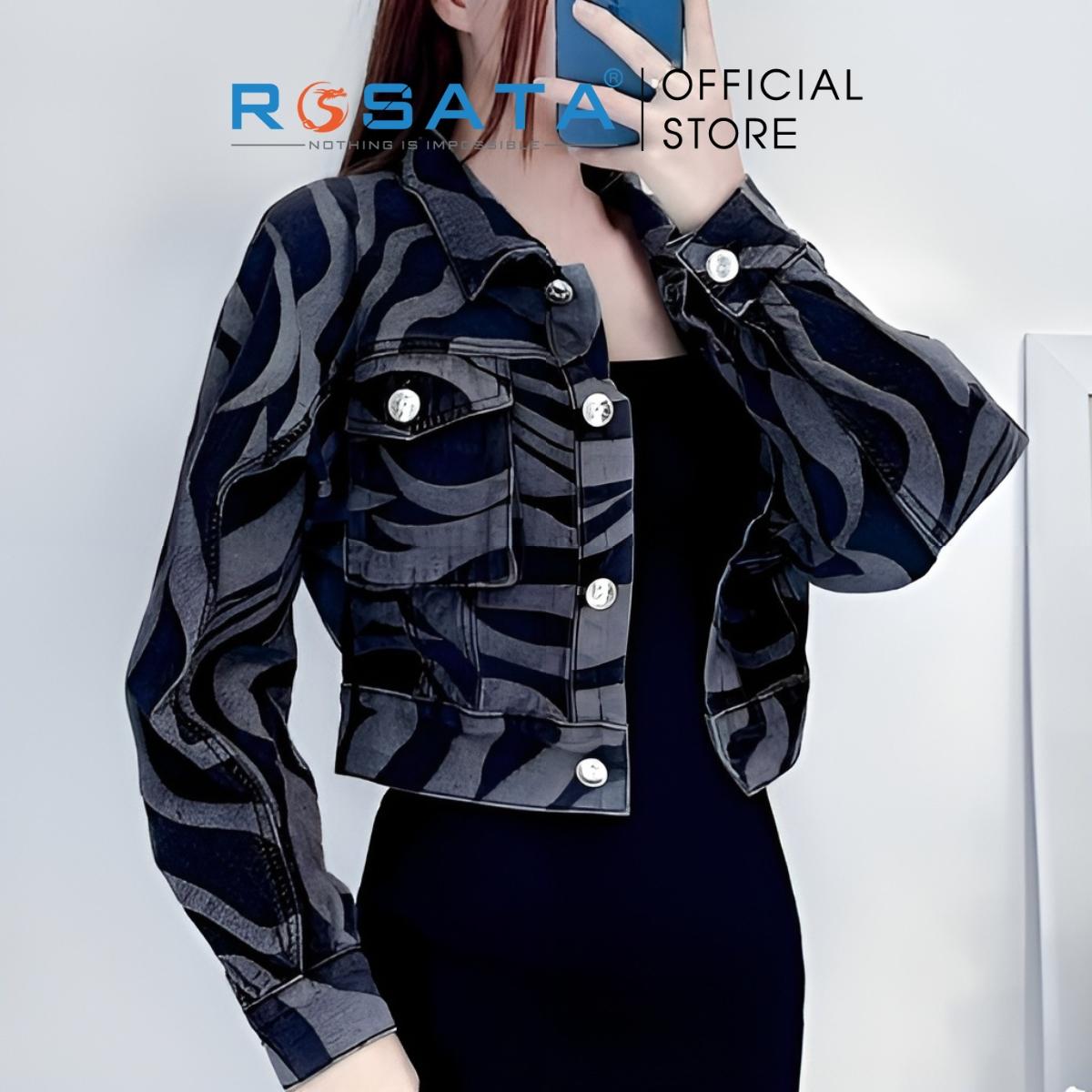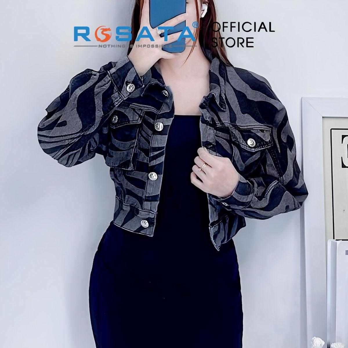 Tên sản phẩm: Áo khoác nữ ROSATA K31 croptop jeans túi hộp tay dài Freesize da hổ thời trang cao cấp thoáng khí xuất xứ Việt Nam