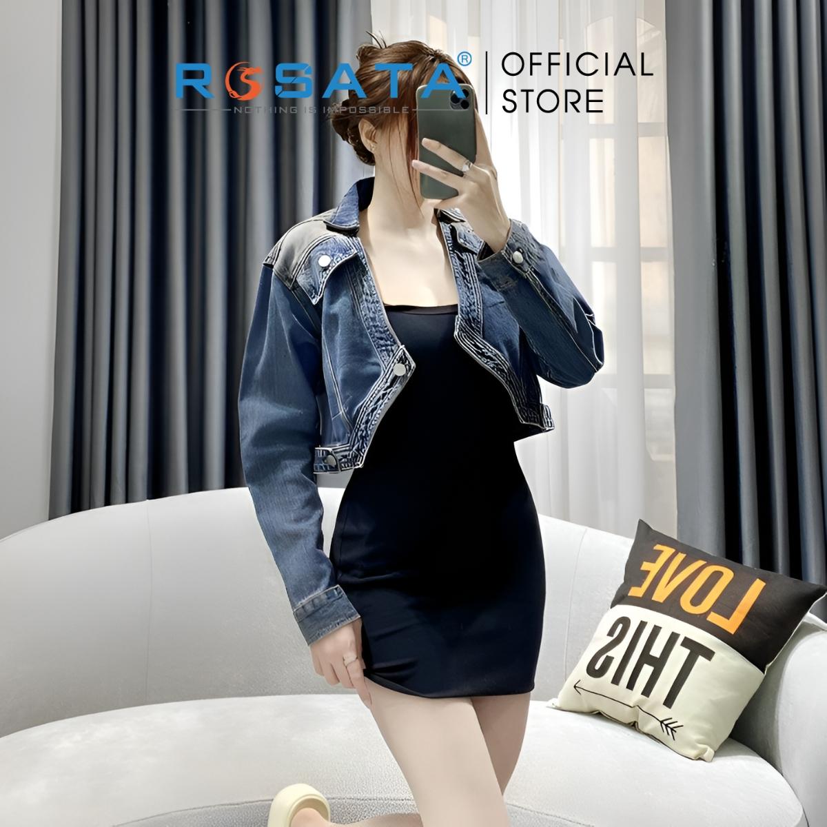 Tên sản phẩm: Áo Khoác Nữ ROSATA K33 Croptop Jeans Dài Tay Màu Xanh Cao Cấp Freesize Xuất Xứ Việt Nam