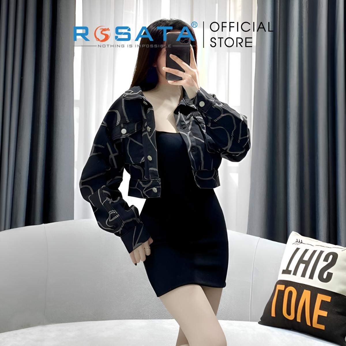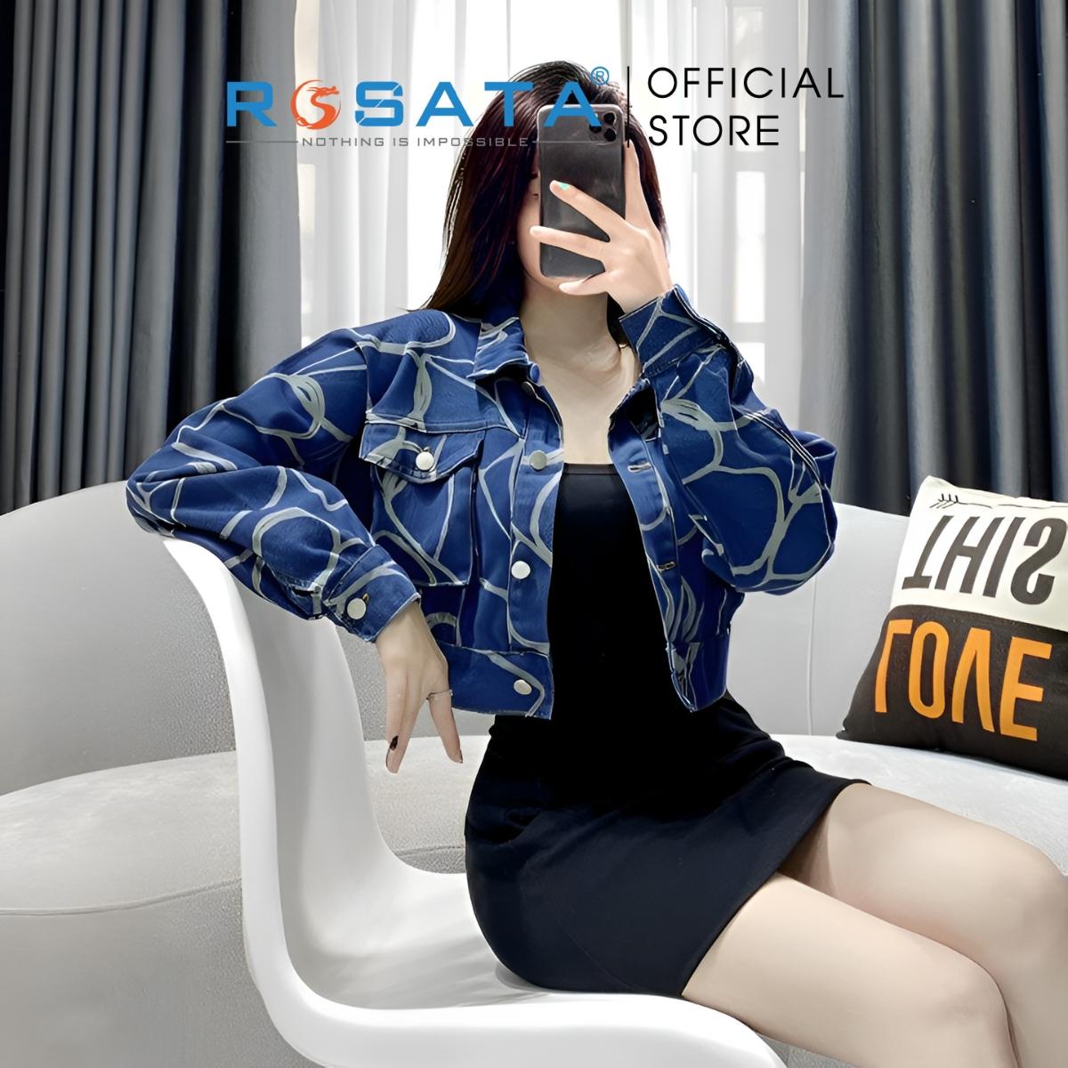 Tên sản phẩm: Áo Khoác Nữ ROSATA K37 Croptop Jeans Tay Dài Túi Hộp In Họa Tiết Trắng Freesize Cao Cấp Xuất Xứ Việt Nam