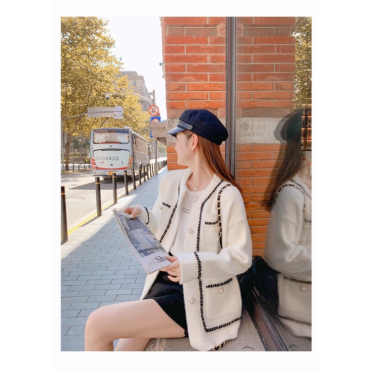 Giới thiệu áo khoác nữ thu đông 2 lớp, áo khoác lông viền dạ cúc ngọc điệu đà kèm ảnh thật phía sau