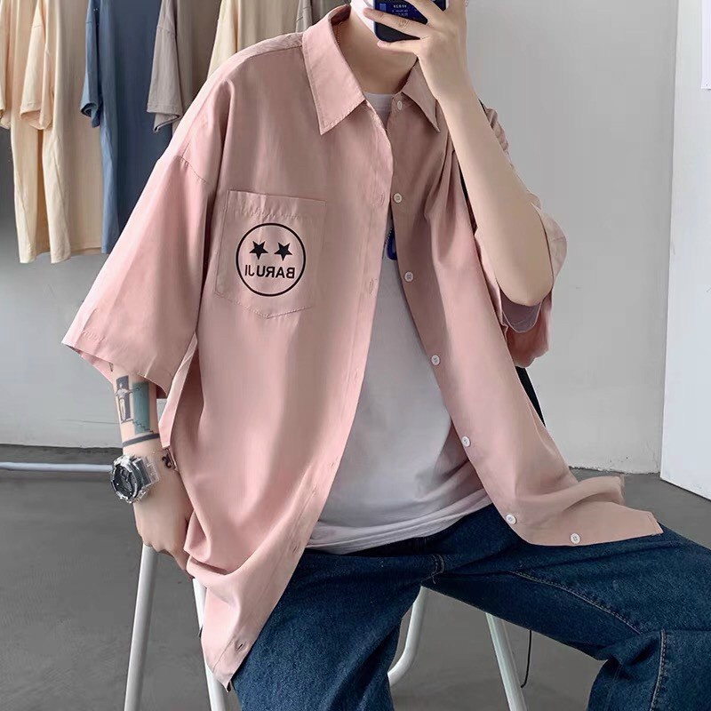 Áo khoác sơ mi kaki nam form rộng in mặt cười cực đẹp mặc đi chơi, Áo Khoác Nhẹ Nam Nữ ULZZang