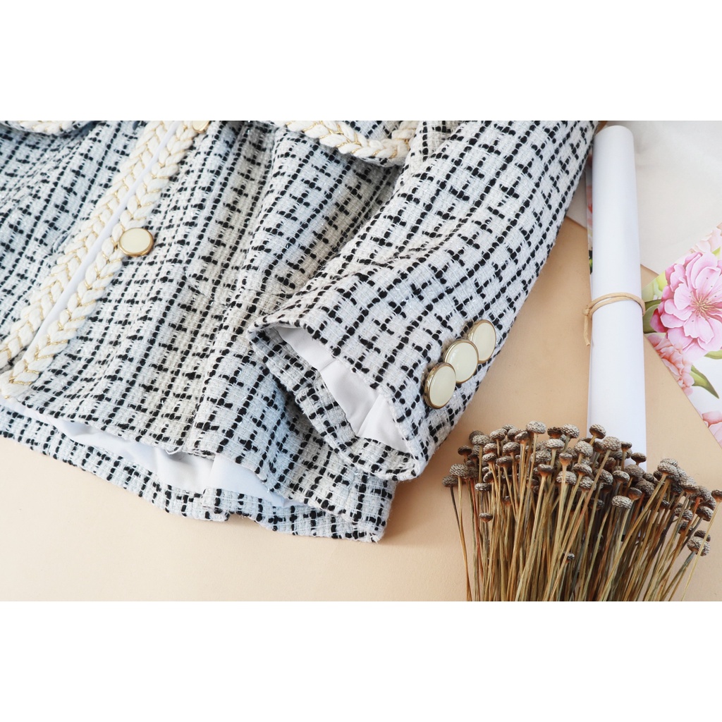 Áo khoác Stweed KACHISA hai lớp dày dặn THÔNG TIN SẢN PHẨM - Chất liệu: stweed - Màu sắc: Trắng, Đen - Size: M Một mùa giáng sinh lại đến KACHISA trao gửi sự ấm áp đến các chị với mẫu thiết kế áo khoác stweed hai lớp dày dặn, được dệt sợi chỉn chu và mềm mại. Với gam màu trắng đen huyền mỹ tạo sự quyến rũ và sang trọng khi bước xuống phố mùa lễ hội.