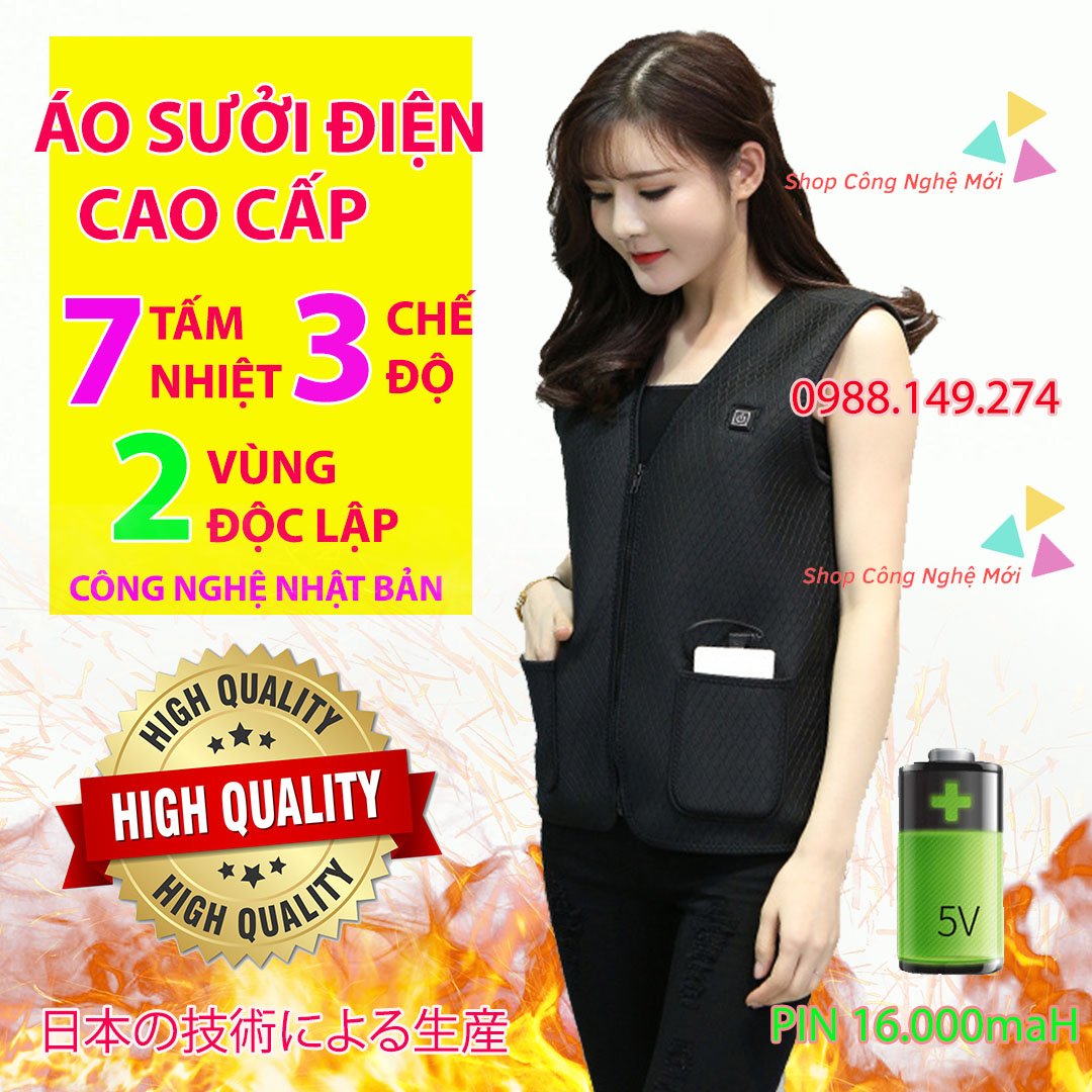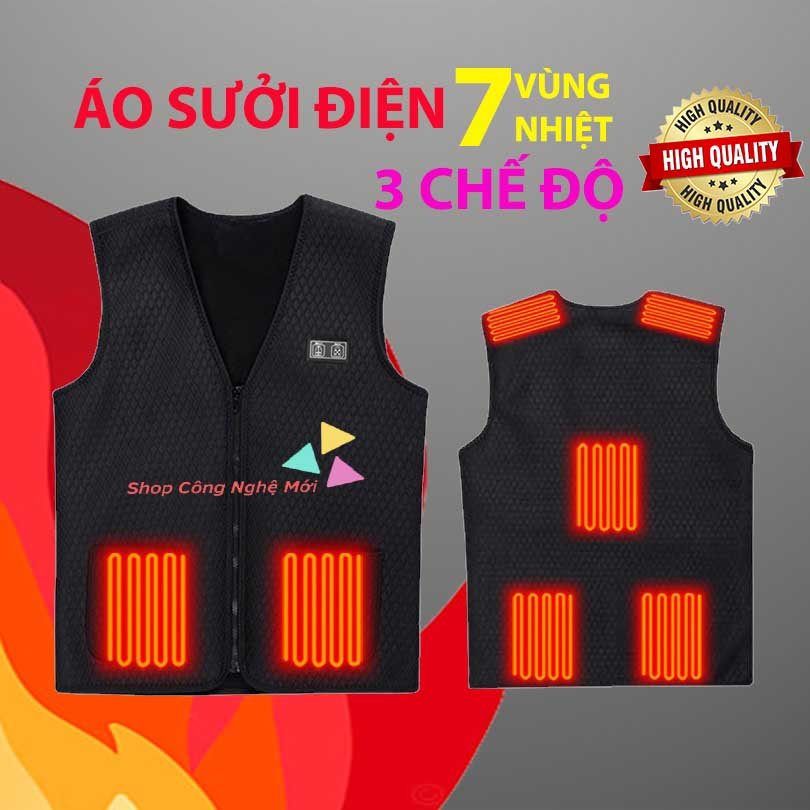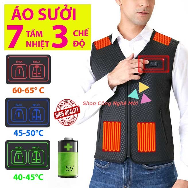 ***** Áo Sưởi Điện 7 tấm Nhiệt - 2 nút điều khiển ( điều khiển 2 vùng riêng biệt theo ý muốn) Mẫu Mới 2022 , Áo Khoác Điện Ghile Công Nghệ Nhật Bản Sử Dụng Pin Từ Sạc Dự Phòng