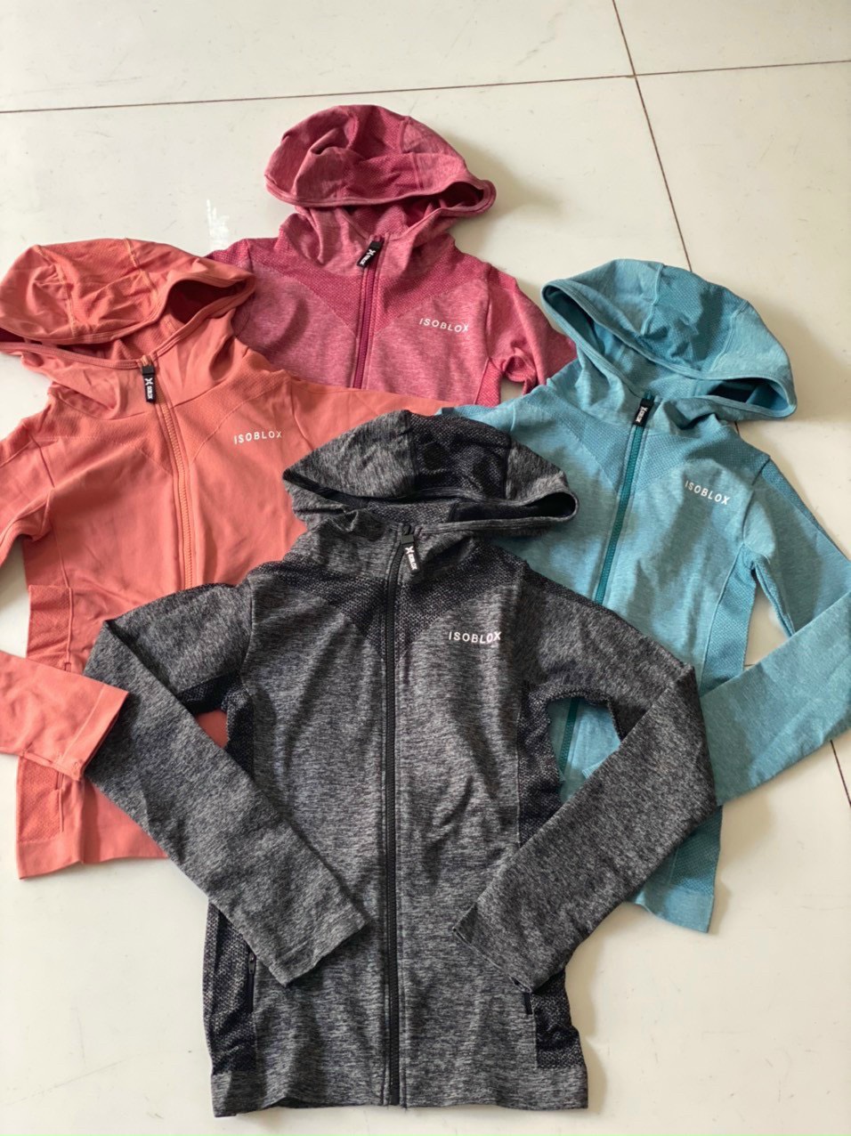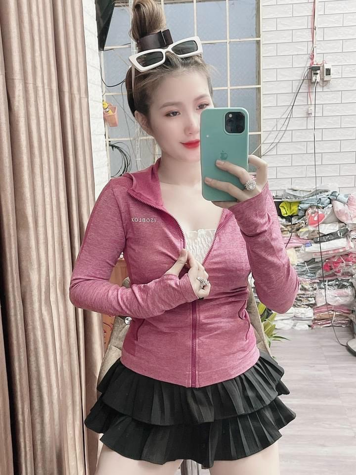 Chất thun dệt kim cao cấp , mềm mịn , thấm hút mồ hôi , thoáng khí , 2 bên túi có khoá kéo , 2 tay áo dài xỏ ngón chống nắng , phía sau có nón