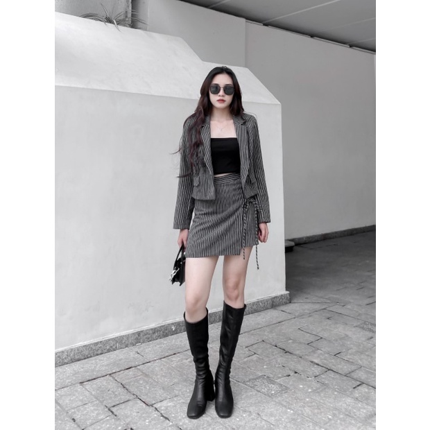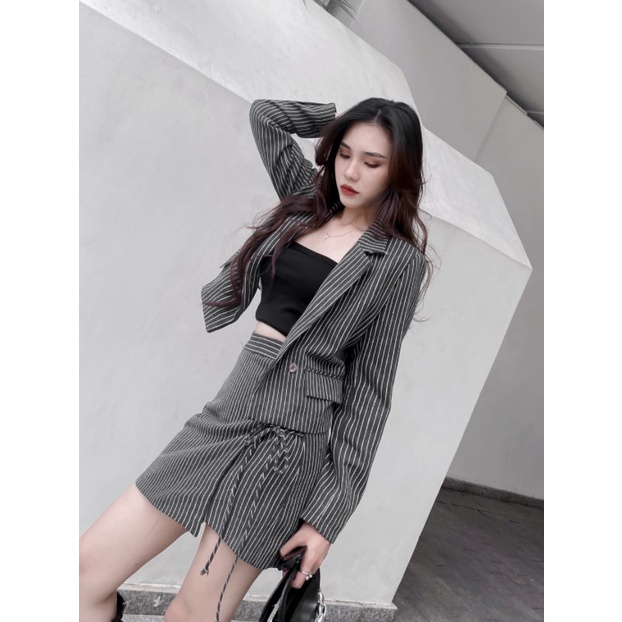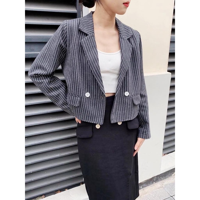 Giới thiệu [Mã BMBAU50 giảm 7% đơn 99K] Áo khoác vest blazer nữ dài tay 2 lớp thời trang GAGO hoạ tiết đen sọc GA3642