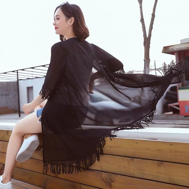 Thời Trang Nữ > Áo khoác > Áo khoác ngoài || Áo Khoác Voan Đi Biển Tua Rua, Áo Choàng Đi Biển Kimono Thời Trang