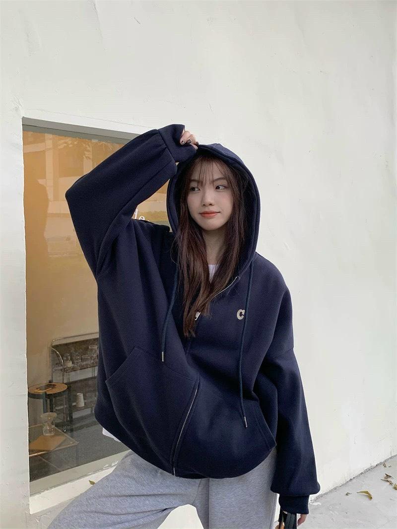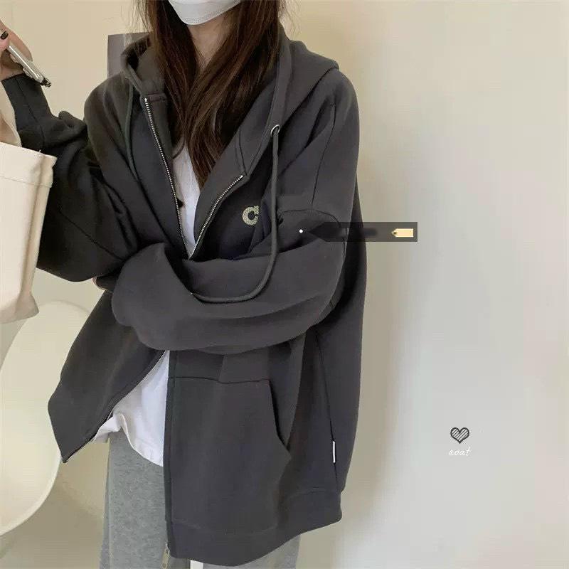 ÁO KHOÁC ZIPPER NỮ LOGO THÊU CHỮ C SIÊU SINH SIÊU HOT THỜI TRANG