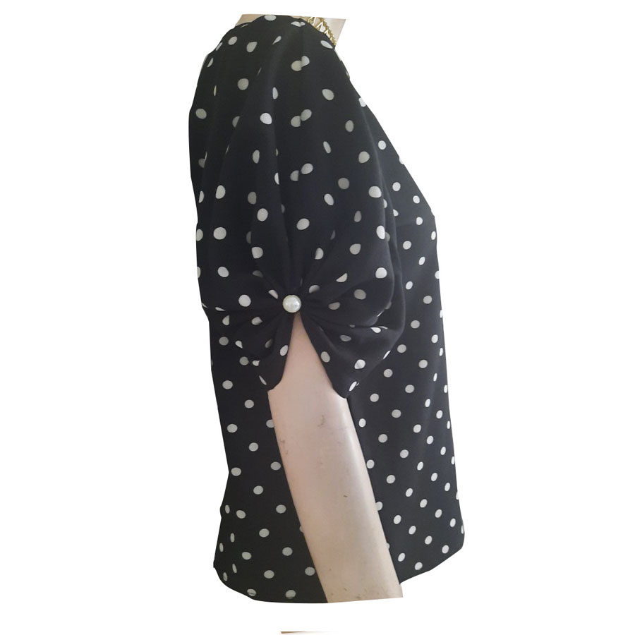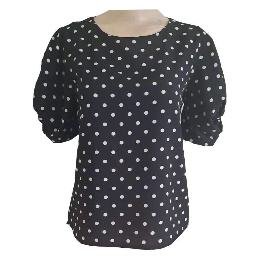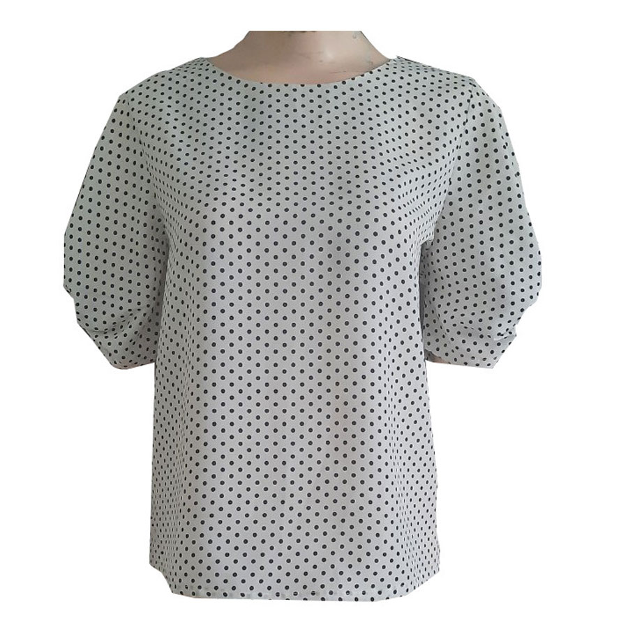 - Chất liệu Lụa hàn phối trên nền chấm bi nhẹ nhàng, lịch sự . Thiết kế tay rộng xếp hình bông hồng rất lạ nhẹ nhàng nữ tính