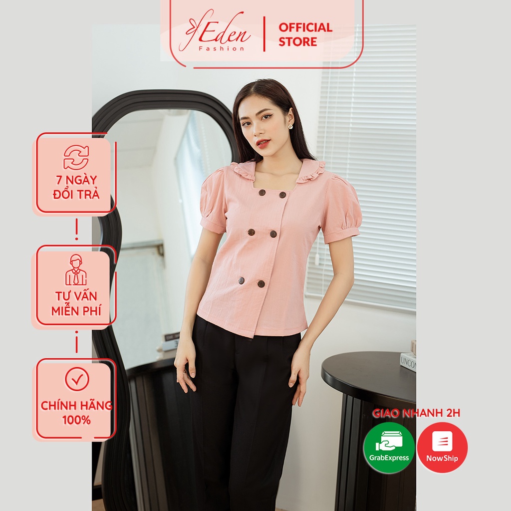 Cám ơn quý khách hàng đã quan tâm đến sản phẩm áo kiểu nữ công sở cổ vuông phối nút thiết kế thời trang Eden nút gỗ trang trí tay phồng - ASM187