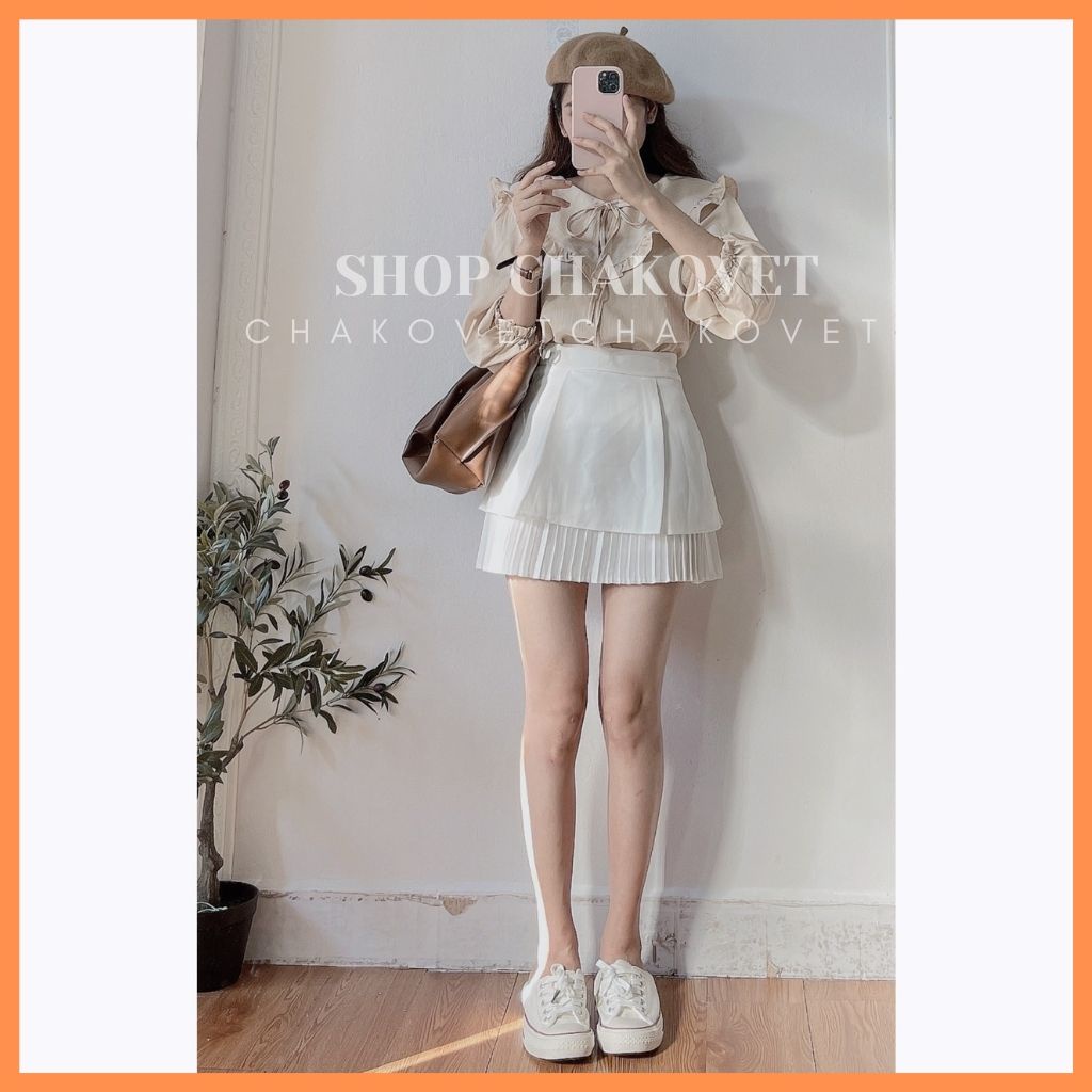 Giới thiệu Áo kiểu nữ hàn quốc bánh bèo CKA880, sơ mi nữ tay lỡ cổ bèo buộc nơ tay bo chun thích hơp mặc đi làm đi học