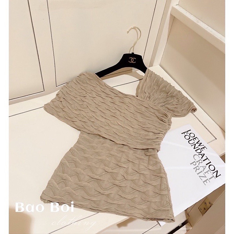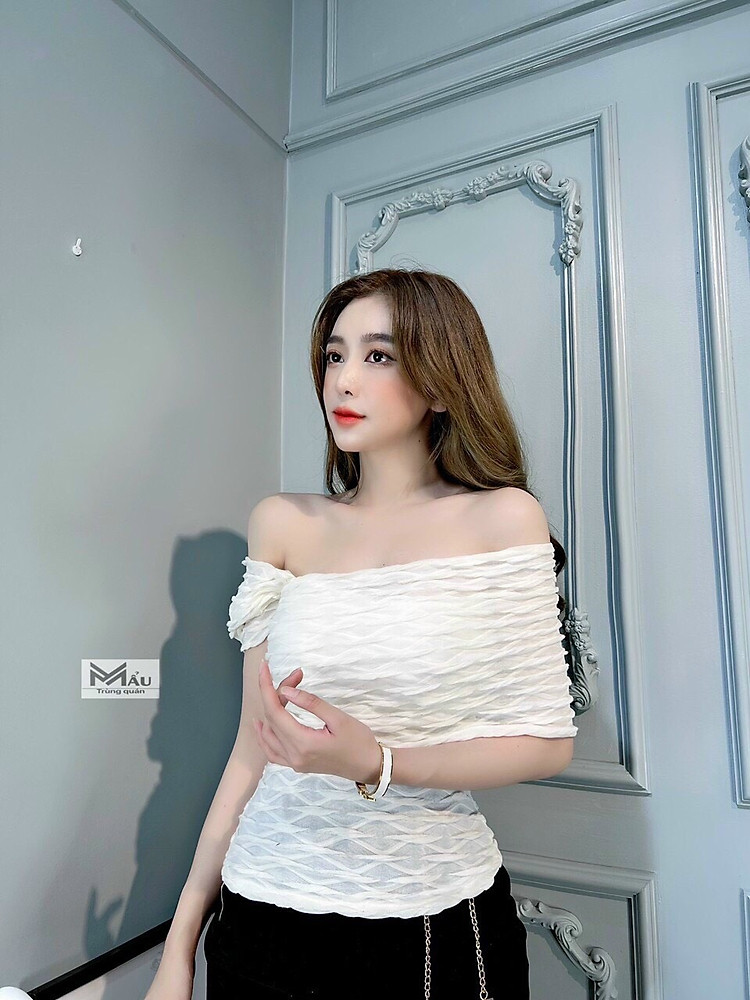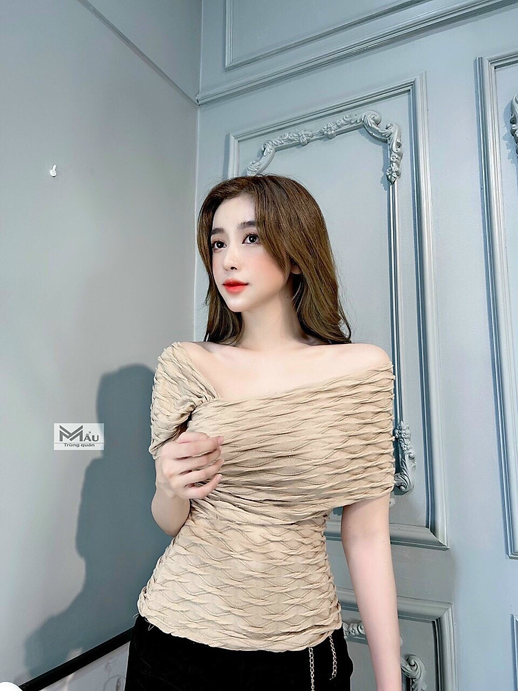 Áo kiểu nữ QC gân sóng lệch vai cá tính ATN703