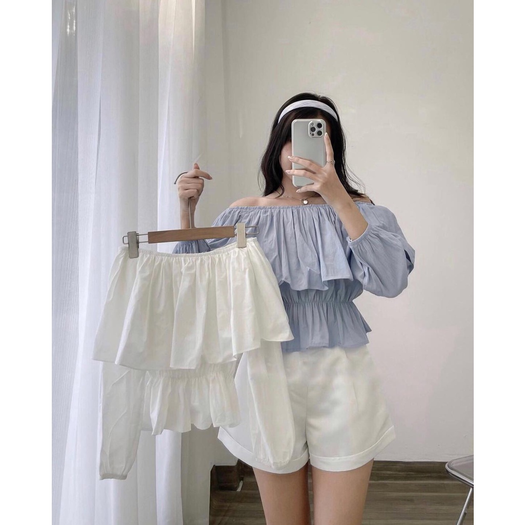 Giới thiệu Áo kiểu nữ trễ vai tay dài 3 tầng lai thun fmstyle, áo trễ vai tay dài phong cách hàn quốc | Fmstyle Shop 220808110