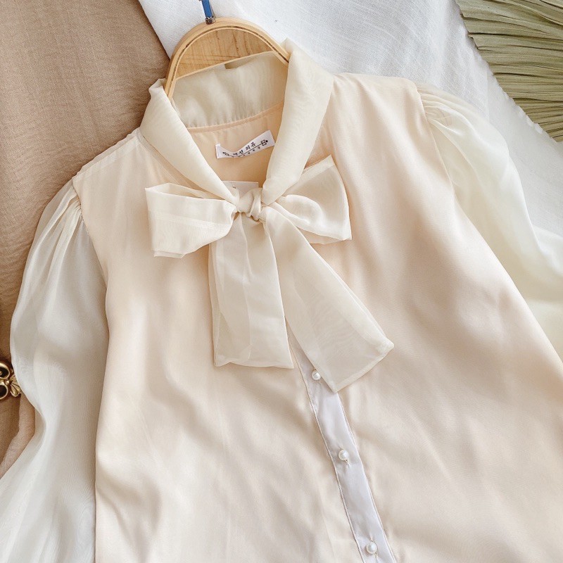 Thời Trang Nữ > Đồ truyền thống > Áo || ÁO KIỂU THẮT NƠ TƠ KEM
