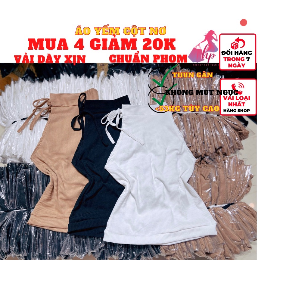 Áo kiểu yếm cổ trụ dáng croptop ôm body chất thun gân cột dây sau mẫu mới 2022 - mã A113