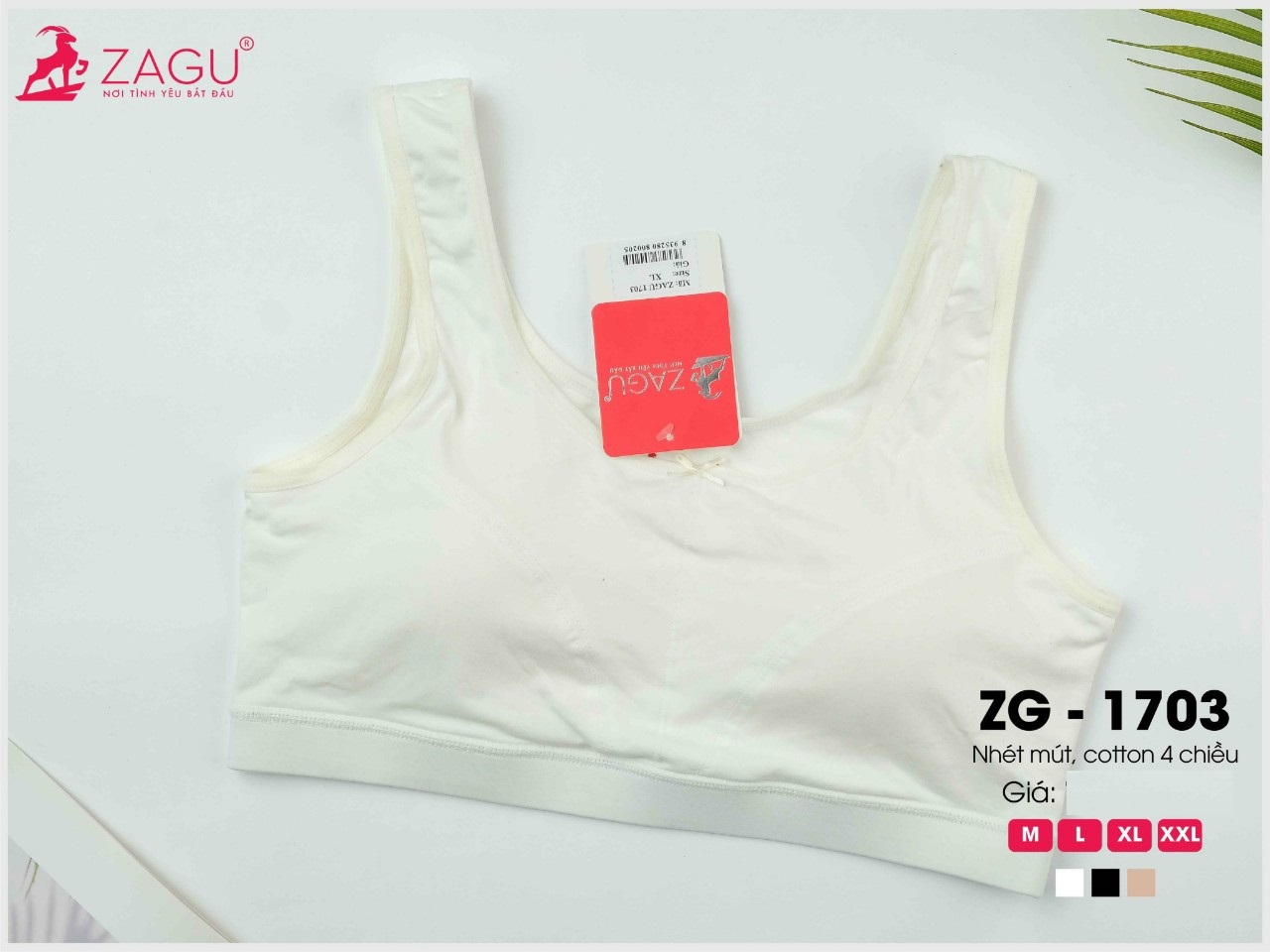 Phần ngực được lót lớp mút mỏng cho bé gái cảm giác không bị gò bó hay bức bí, để bé có thể vận động thoải mái. Áo ngực thể thao ZG 1703 hiện có các size M, L, XL, XXL và màu trắng, da, đen phù hợp với từng form dáng và độ tuổi học sinh của các bé.