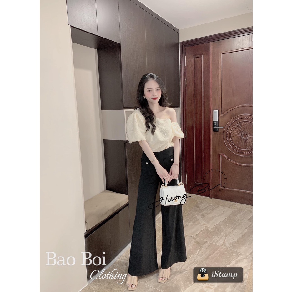 Giới thiệu Áo lệch vai nữ tay bồng tơ hoa 2 lớp mềm mịn hàng thiết kế cao cấp Hottrend LICA - A33