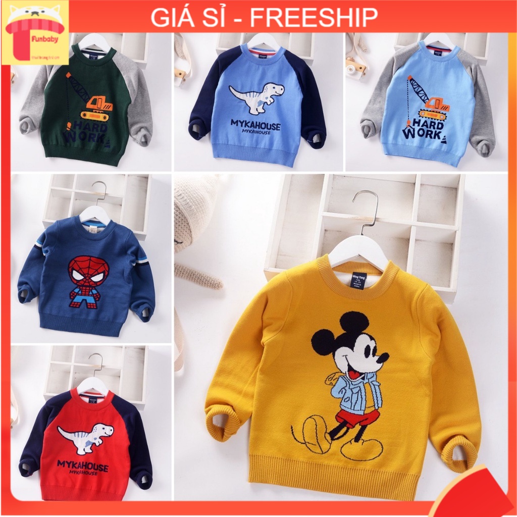 Áo len bé trai dài tay 2 lớp hình ngộ nghĩnh, Áo len cho bé 3-9 tuổi hàng Quảng Châu đanh sợi không bai xù