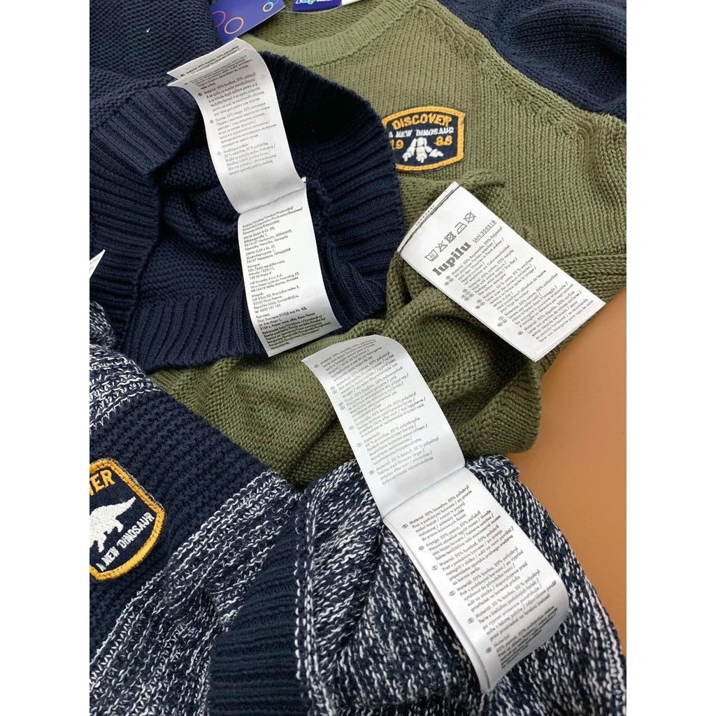 - Chất len sợi cotton tre dày vừa, mịn, mềm rủ, mướt tay. Có 3 mẫu: dệt kiểu hạt gạo, dệt kiểu dòng kẻ chìm - nổi, dệt trơn. Góc ngực áo đắp nổi Logo hình thêu khủng long rất đẹp.