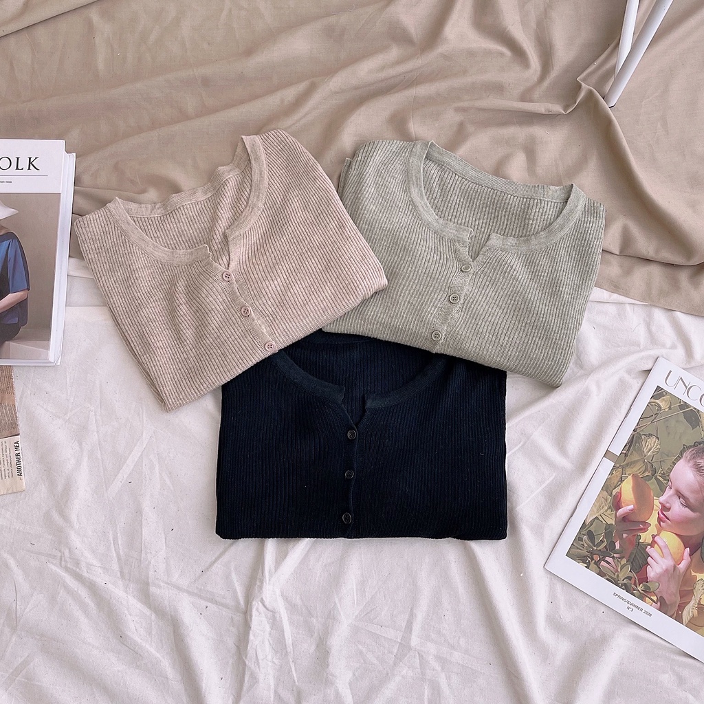 Áo Len Cadigan Nữ Dáng Ngắn Cổ Tròn Cài Cúc Zym's House