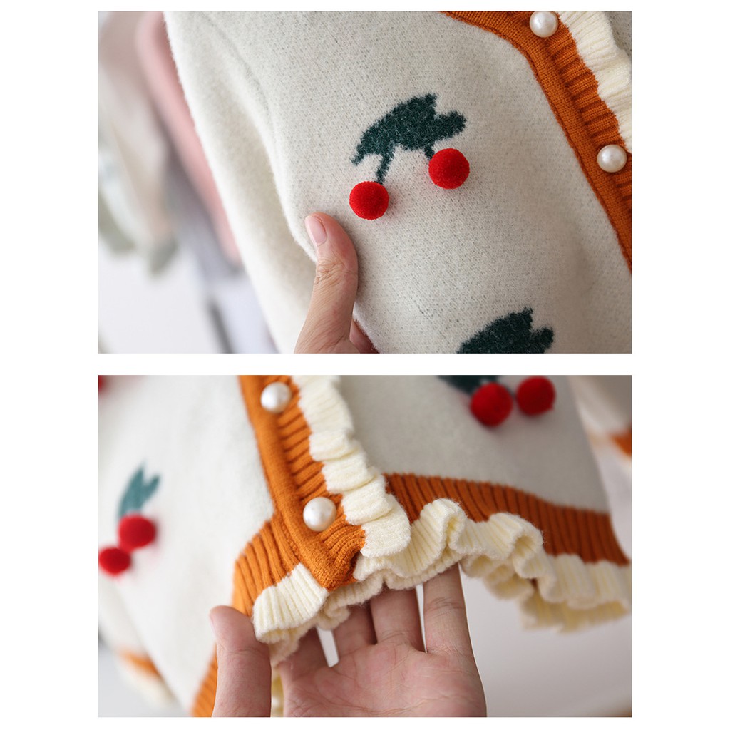 Giới thiệu Áo len cài cúc quả cherry bé gái size 10-20kg