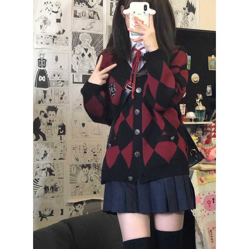 Tiếp theo là kiểu mix áo cardigan len với 1 chiếc váy ngắn, thường là váy kẻ caro, váy jk theo phong cách nữ sinh dễ thương