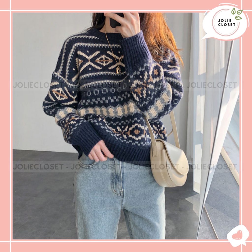 Thời Trang Nữ > Áo len || Áo len Cloud Films xuất Nhật hoạ tiết thổ cẩm đan thủ công chất lượng tiêu chuẩn xuất khẩu