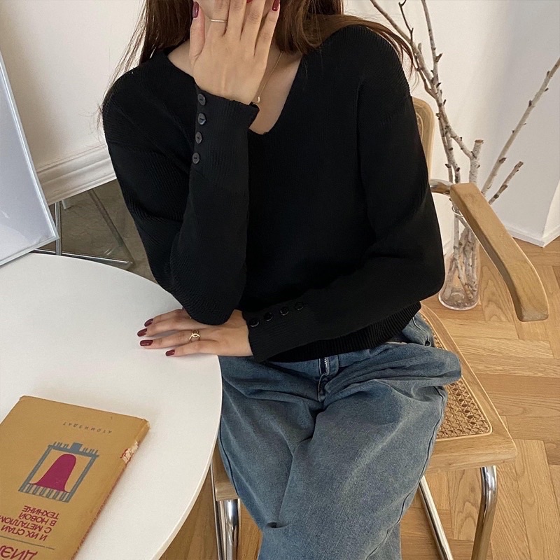 Áo len cổ tim tay đính cúc cao cấp