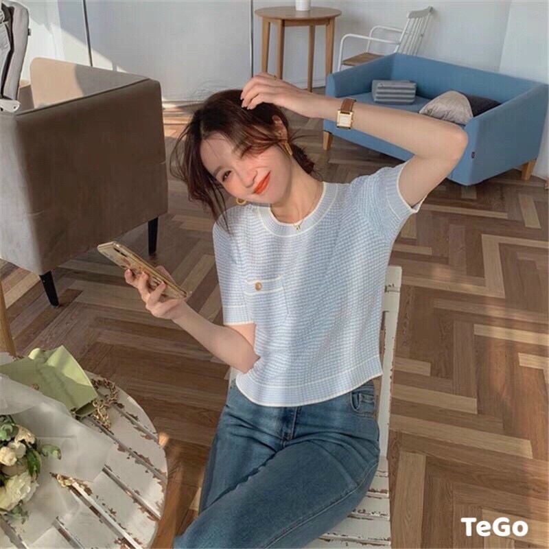 Thời Trang Nữ > Áo len || Áo len cổ tròn 1 túi khuy ngọc