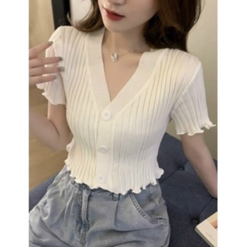 Giới thiệu Áo len cộc tay dáng ngắn cài khuy(kèm ảnh trải sàn)