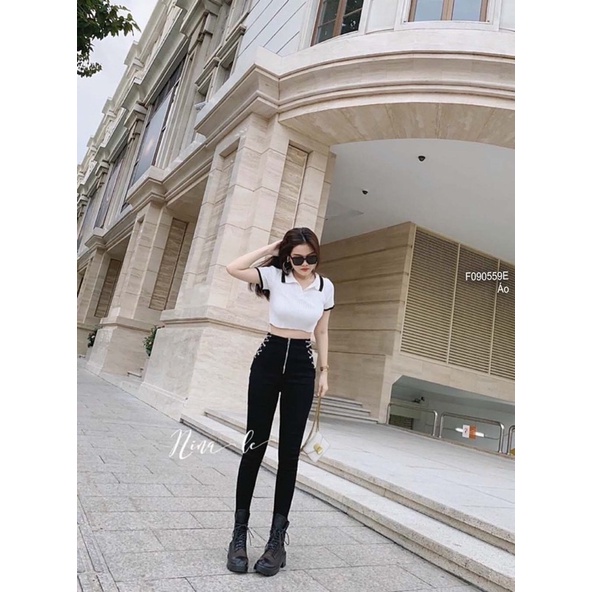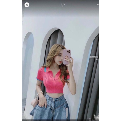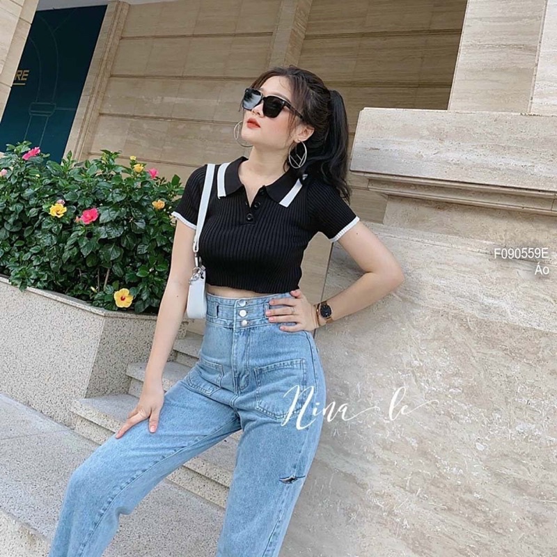 Thời Trang Nữ > Áo len || Áo len croptop cổ phối viền