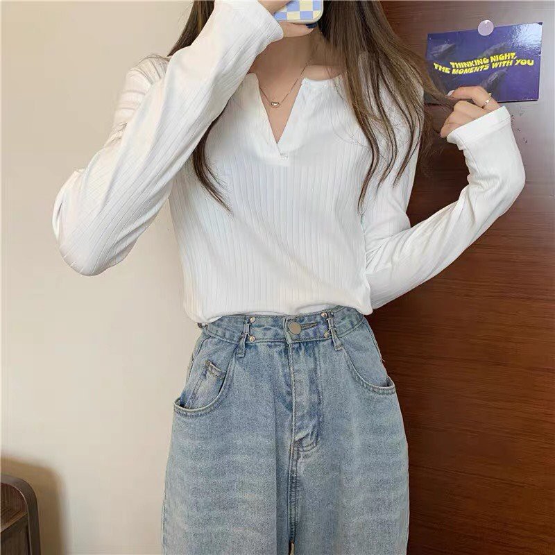 🎉Áo Len Croptop Dài Tay Cổ Chữ V Chất Len Tăm Mềm Mịn Phong Cách Hàn Quốc