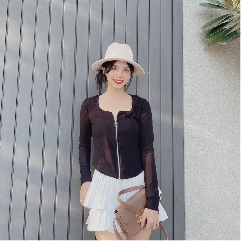 Áo Len Crotop Dài Tay Nữ Khoá Kéo Ôm Body Nhung Tăm Cách Điệu Hàn Quốc Sexy - Có Ảnh +Video Thật
