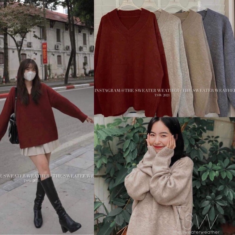 Giới thiệu Áo len dáng rộng cổ V chất len mịn Quảng Châu loại 1 (Ảnh thật/Sẵn)