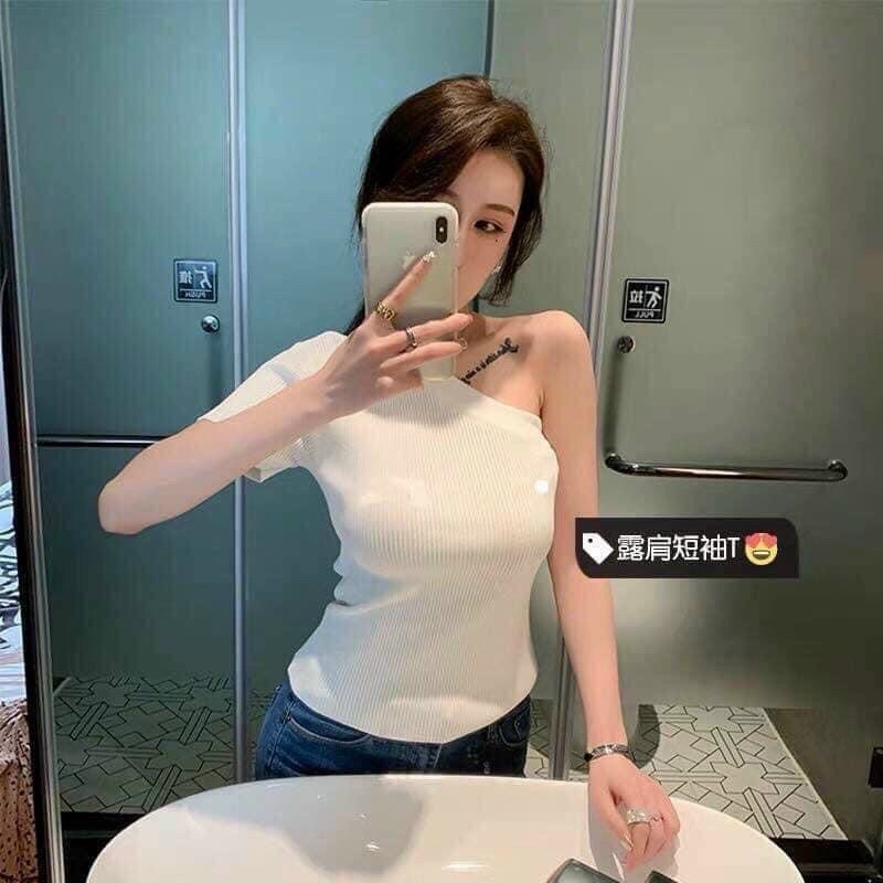áo len dệt kim kiểu lệch tay hở 1 bên vai sexy (1807#)