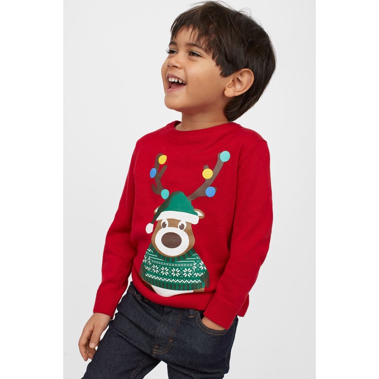 Thời trang trẻ em & trẻ sơ sinh > Quần áo bé trai > Áo khoác > Áo len chui đầu & cardigan || Áo len đỏ noel bé trai HM