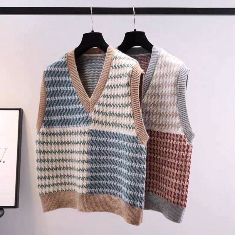 Thời Trang Nữ > Áo len || Áo len gile thổ cẩm phối màu quảng châu