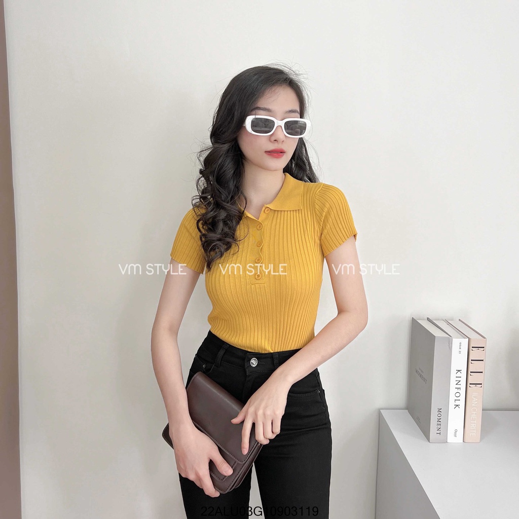 ÁO LEN KIỂU NỮ TAY NGẮN CỔ BẺ 5 NÚT - VM STYLE