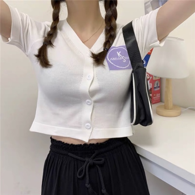 Áo len mỏng croptop ngực huy hiệu 9549 Ulzzang style Hàng Quảng Châu