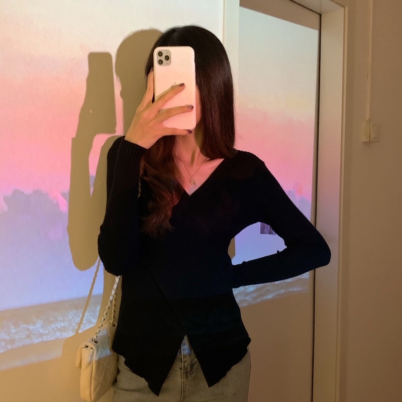 Giới thiệu Áo len mỏng vạt chéo tay dài CA164