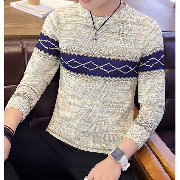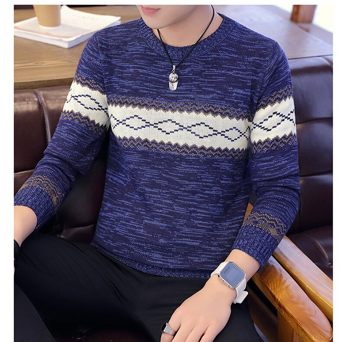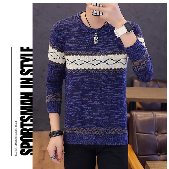 Giới thiệu Áo len nam cổ tròn phối màu cơ bản, thời trang phong cách trẻ