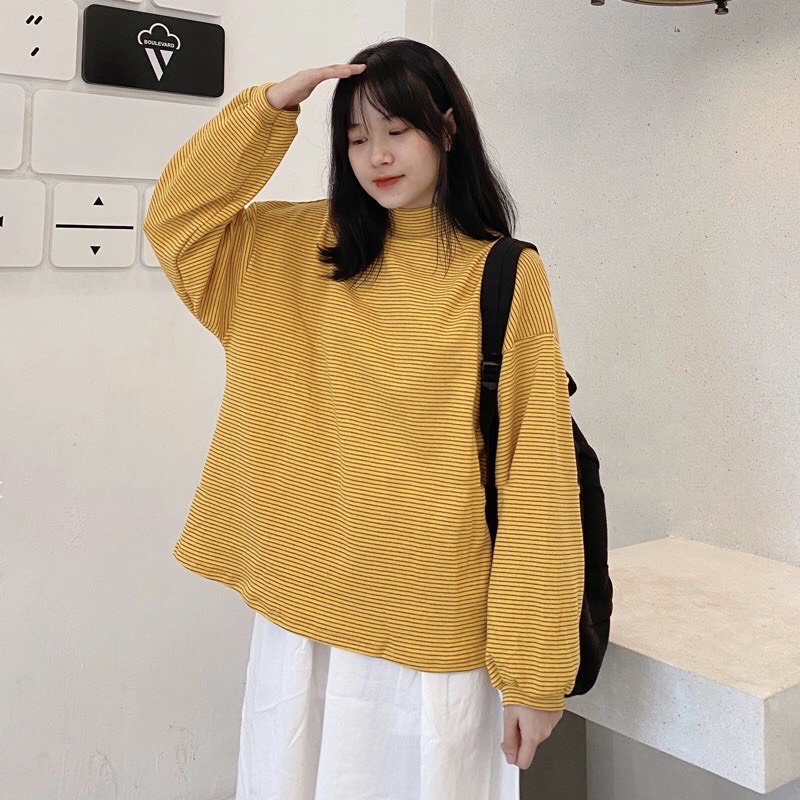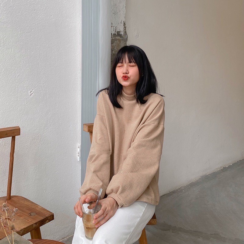 Giới thiệu Áo Len Nỉ Cao Cổ Tay Bồng Kẻ Sọc Ullzzang - Mono Boutique
