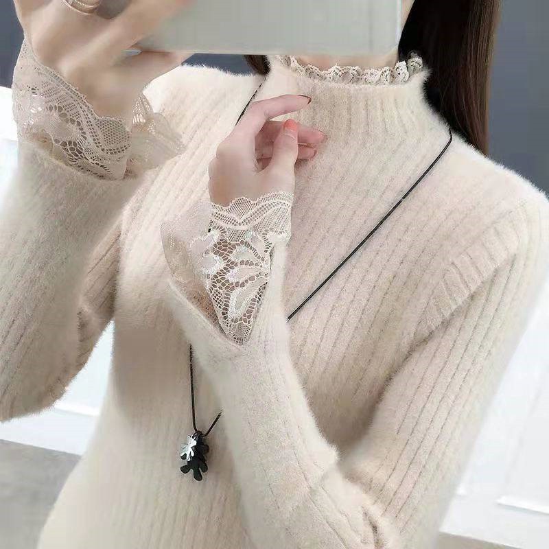 Áo Len Nữ Cổ Lọ Cao Phối Ren Thời Trang Hàn Quốc Chất Len Lông Mịn Đẹp