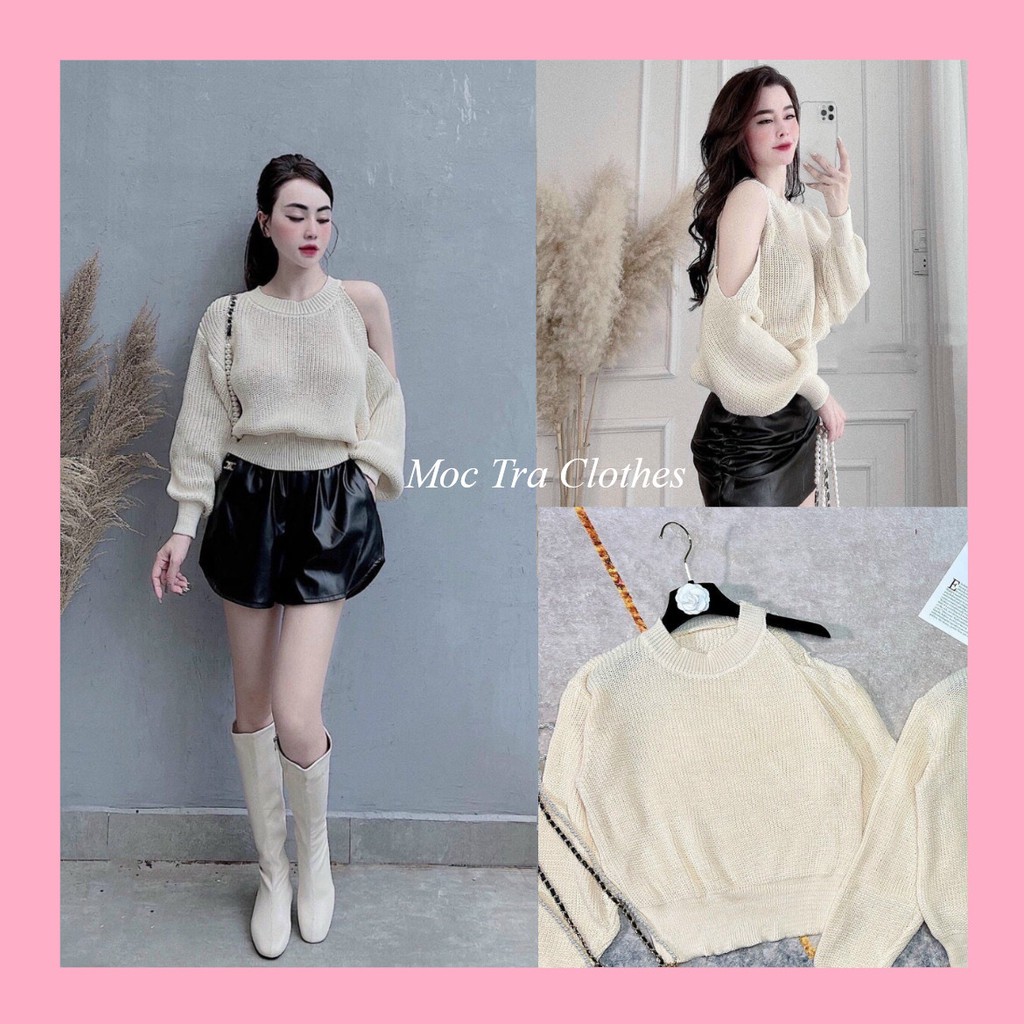 Giới thiệu Áo len nữ hở vai Loại 1 màu kem thiết kế khoét vai tiểu thư siêu xinh, Áo kiểu nữ mùa đông rẻ đẹp