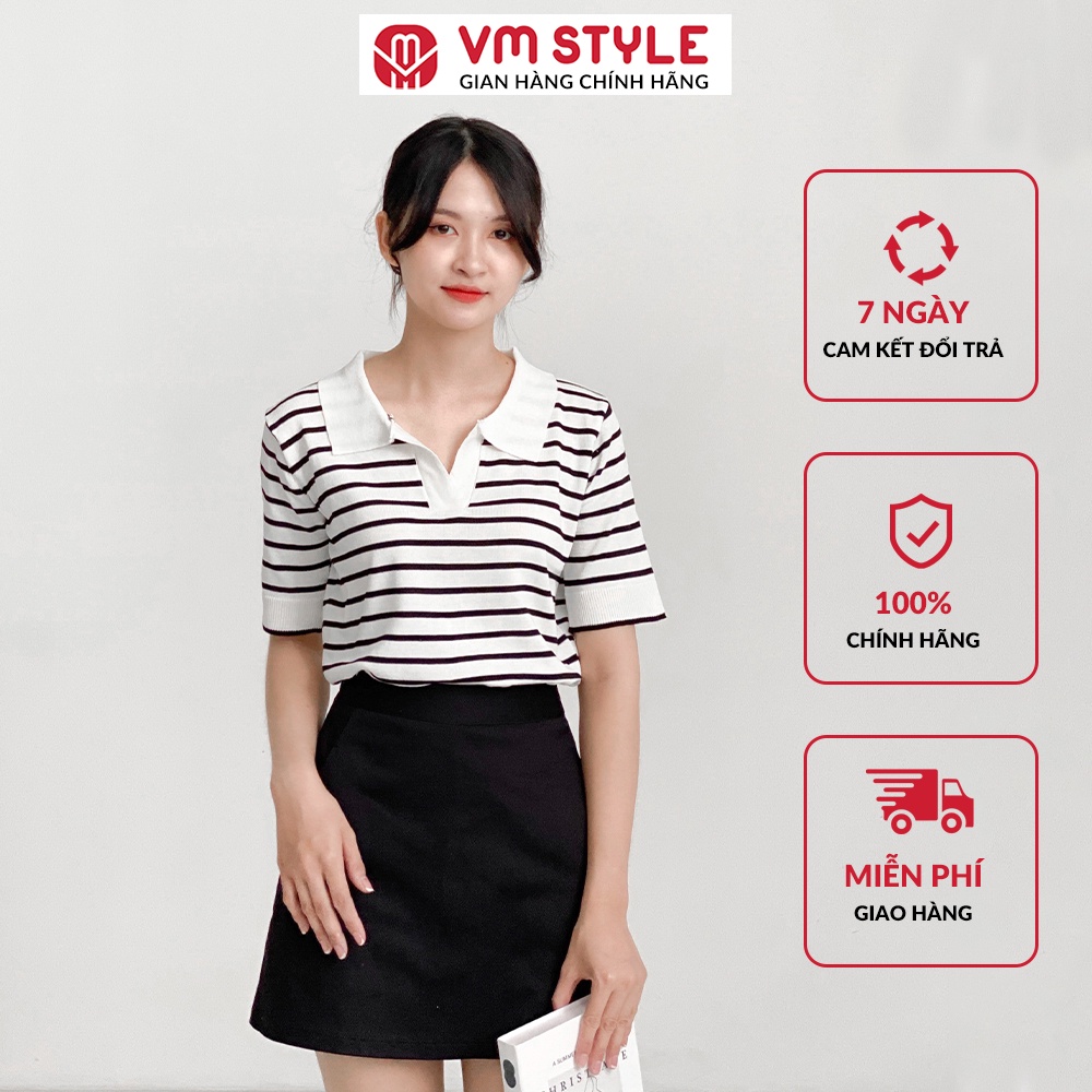 ÁO LEN NỮ NGẮN TAY VM STYLE THIẾT KẾ CỔ BẺ HỌA TIẾT KẺ SỌC NGANG BASIC - VM STYLE