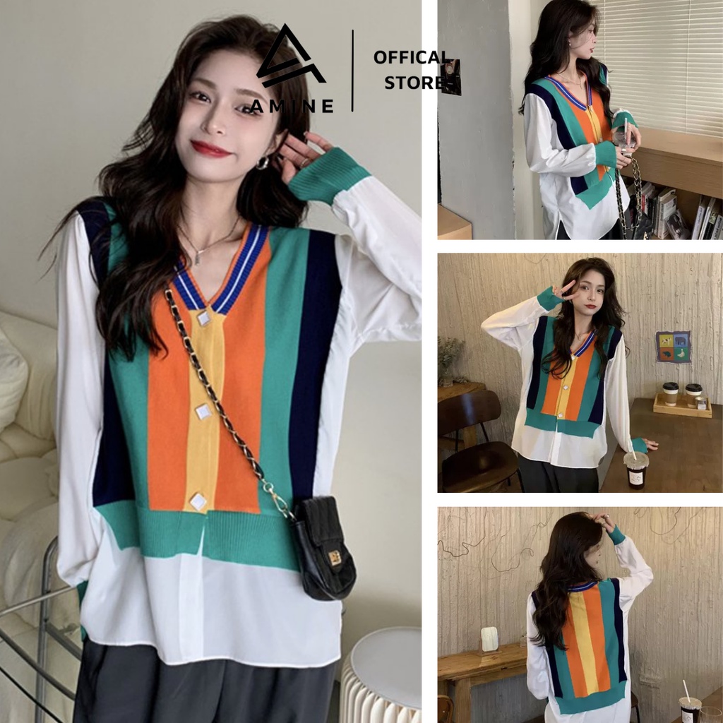 Giới thiệu Áo len nữ , sơ mi nữ form rộng phối len phong cách Hàn Quốc cực mềm C19