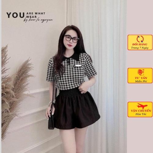 Giới thiệu Áo len nữ tay ngắn kẻ sọc caro đen trắng cổ chữ V công sở ulzzang Hàn Quốc mùa thu đông