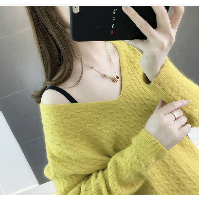 Thời Trang Nữ > Áo len || Áo len nữ xì tin cổ V, áo len kiểu nhiều màu gân thừng - DTH