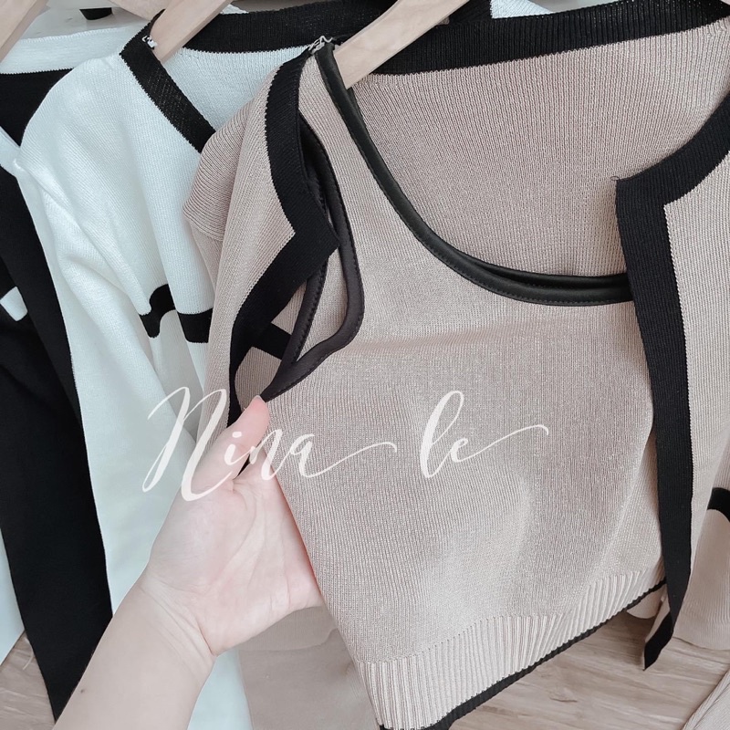 Áo len phối áo khoác viền + chân váy da rút mẫu chị Nina Lê ✨Shop Lotus✨