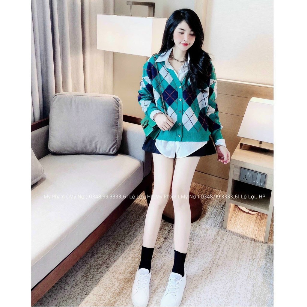 Áo len quảng châu cadigan caro cài nút cực xinh , chất len dày dặn